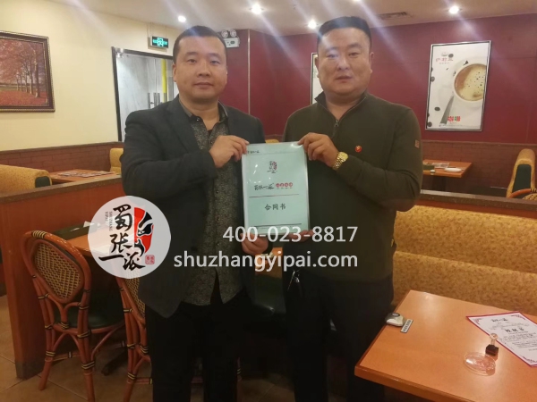 蜀张一派天津津南店完成签约!祝天津市马总,王总生意兴隆!财源广进!蜀张一派合作热线400 023 8817与感恩之人为友,同靠谱之人做事!蜀张一派期待天下有识之士加入,联手共创诚信事业!